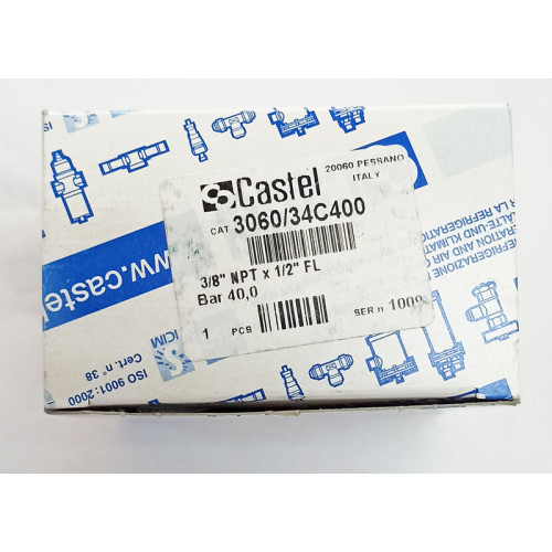 Предпазният клапан CASTEL 3060/34C400 е високонадежден компонент, предназначен за защита на хладилни и климатични системи от прекомерно повишаване на налягането. Той е част от доказаната серия 3060 на Castel и осигурява сигурна и стабилна работа при налягане на отваряне 40 bar.