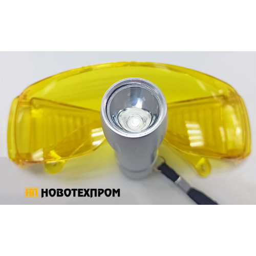 Комплектът представлява UV детектор за откриване на течове в хладилни и климатични системи. Използва се за бързо и точно локализиране на течове на фреон, масло или други работни флуиди чрез ултравиолетова светлина.